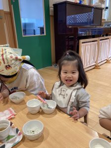 1月7日は七草粥の日です。浦安園のお友だちもおやつの時に食べました!