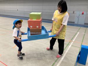 お父さん、お母さんと一緒に協力して様々な障害物に挑戦することができました!😉