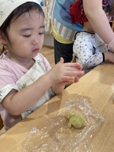 コロコロ丸めて、自分の手作りお団子を作りました。