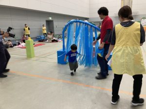お父さん、お母さんと一緒に協力して様々な障害物に挑戦することができました!😉