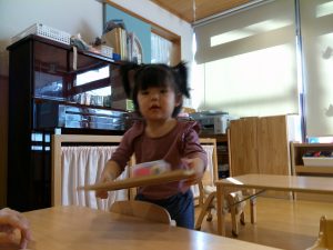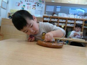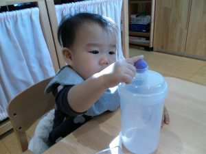 0歳さんも、小さな指でポットン落としです。指先に集中していましたよ。