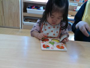 木の型はめパズルは、大好きなフルーツが沢山😊