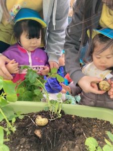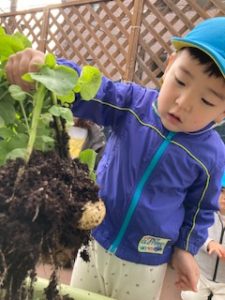 出てきたじゃがいもを見て、驚いたり喜んだりとじゃがいも掘りを楽しみました♪