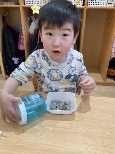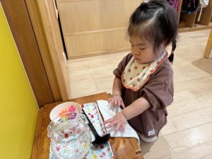 自分で拭き、綺麗になると「おぉ〜✨」と