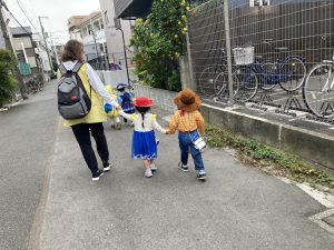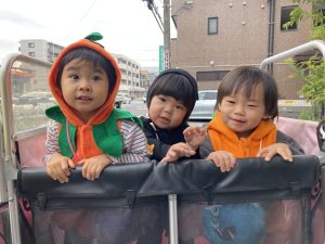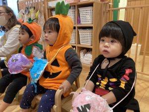 最初にハロウィンの絵本を読んでからさっそくハロウィンのお散歩に出発です💨