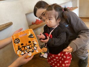 みんな緊張しながら「トリックオアトリート」を言ってお菓子をもらいましたよ🍭