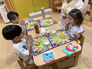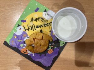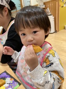 ペーパーナプキンに描かれた絵を見て「かぼちゃ!」「これなーに?」などたくさんお話もできました✨