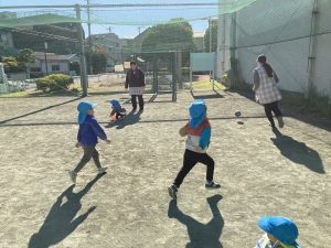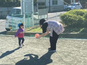 先生と一緒にキャッチボールを