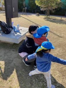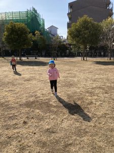 神社でお参りした後に、公園で元気一杯走りました!