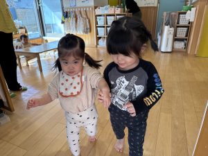 歩けるお友だちは手を繋いで仲良く