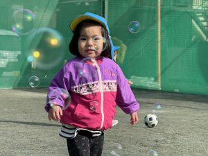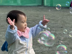 小さいお友だちはシャボン玉に夢中でした!